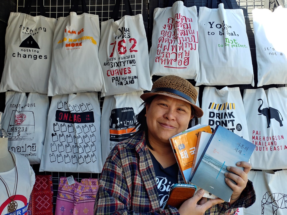 누이스의 상점에선 비닐봉지 대신 택배용 뽁뽁이나 포장비닐을 수거한 뒤 끈을 매달아 물건을 담아준다. 또한, 여행자들은 아트숍 빠이의 몬타리(Montalee) 작가가 판화로 만든 기념품인 에코백으로 비닐봉지를 대신한다. 대나무로 만들어진 씨엔 갤러리의 사카우(Sakaw) 작가는 고사리와 꽃잎을 말려 붙인 엽서와 코끼리똥 공책을 전시·판매한다.