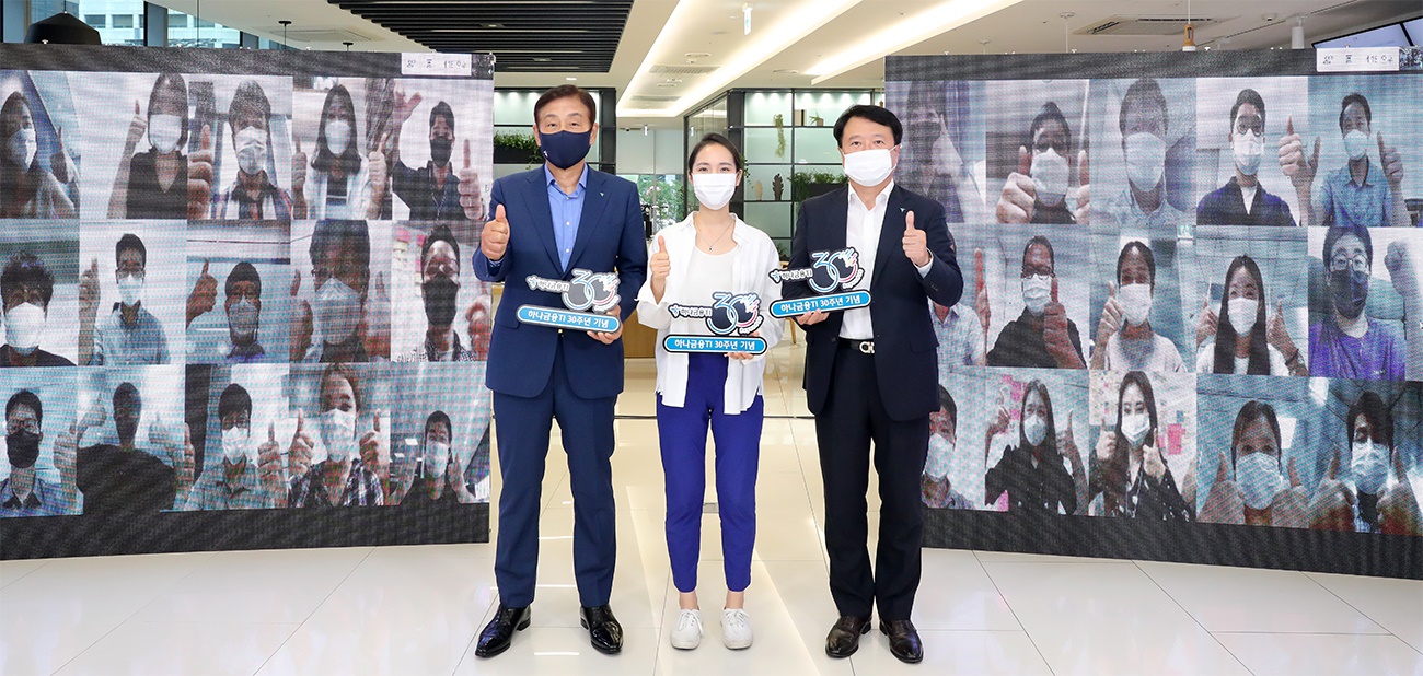 하나은행 을지로 본점에서 「서른 살 랜선 생일파티」라는 이름으로 진행된 이번 기념식은 신종코로나바이러스감염증(코로나19)으로 인한 사회적 거리두기에 따라 대형 스크린을 통한 화상 대화 등 비대면 랜선 방식으로 진행됐다.