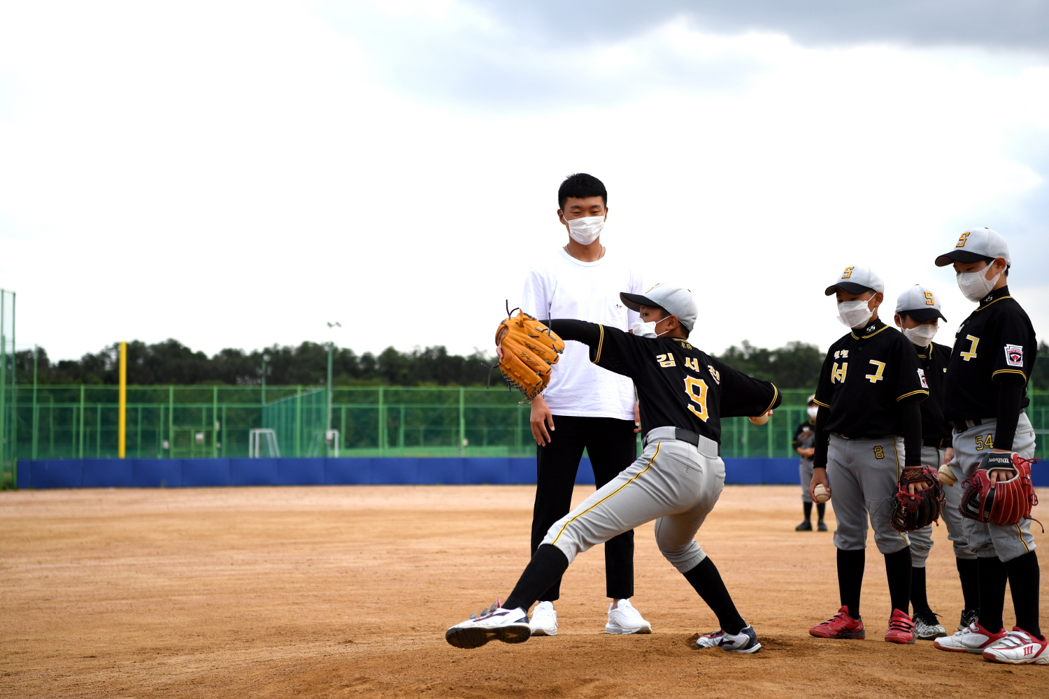 최근 눈코 뜰 새 없이 바쁜 김 선수가 8월31일 드림파크야구장을 찾아 인천서구 리틀야구단 학생들을 격려했다. 어린 시절 김 선수도 인천서구 리틀야구단에서 야구선수의 꿈을 키웠기 때문이다.