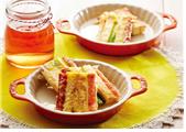 ‘할루미 치즈 꼬치 산적’은 할루미 치즈, 쪽파, 맛살, 햄, 단무지를 비슷한 길이로 썰어 꼬치에 꽂아 밀가루와 달걀물에 묻힌 뒤 노릇하게 구워낸다.
