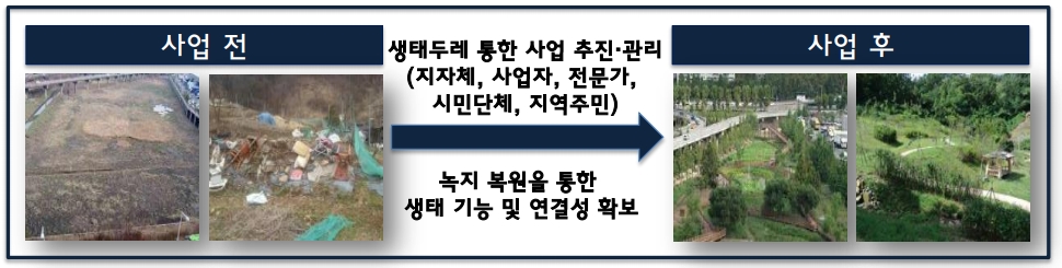 또 고령화와 정주 여건 약화로 인구가 감소하는 지방 도시 및 마을의 유휴지를 생태적으로 재생 복원해 지속 가능한 정주 공간으로 만든다. 파편화된 마을 숲 복원, 공공시설 공원화, 생태놀이터 조성 등 거점녹지의 순차적 복원으로 마을 생태계의 회복력 증진이 필요하다.