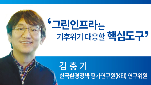 김충기 한국환경정책·평가연구원(KEI) 연구위원은 기후위기에 대응할 수 있는 핵심도구로 그린인프라를 제시했다. 그는 “도시·공간 등 생활환경에서 자연과의 접근성을 높일 수 있는 그린인프라의 적극적인 도입은 친환경 일자리를 창출하고, 국민의 행복지수 향상에 이바지할 것”이라고 말했다.