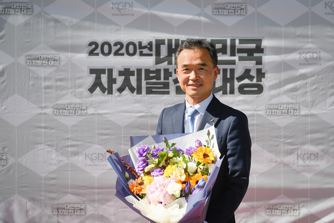 또한, 교육분야의 비약적인 성장으로 전국지방자치단체 50만 미만 시부문 평가에서 종합 1위를 달성하는 등 취임 이후 자치발전의 공로를 인정받아 기초부문(단체장)을 수상하는 영예를 안았다.