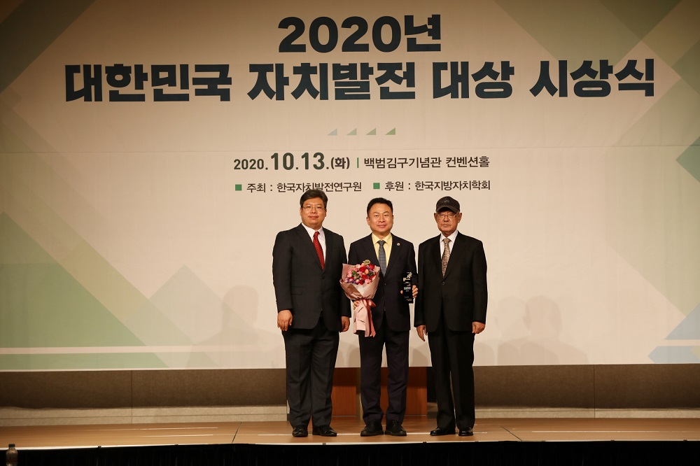 대한민국 자치발전 대상은 지방자치 실시 25주년을 맞이해 지방자치와 자치분권 발전을 위해 모범이 될 만한 성과를 보여준 국회의원, 지방자치단체장, 지방의회의원, 교육감, 공무원 등을 선정하고자 제정된 상이다. 지난 4월부터 7월까지 전국을 대상으로 4개월간 공모를 거쳐 분야별 엄정한 심사 절차를 거쳐 시상자를 선정했다.