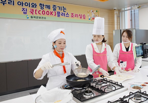 [칠곡=환경일보] 강석조 기자 = 칠곡군보건소는 지난 13일 건강가정다문화가족지원센터 조리실에서 영양플러스 사업의 일환으로 ‘집 쿡(COOk)플러스 조리실습’을 가졌다.