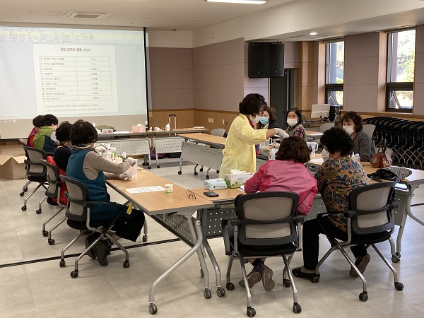 [군위=환경일보] 김희연 기자 = 산성면 주민자치위원회는 장기화된 코로나로 어려움을 겪는 주민들에게 기분전환 등 재충전의 기회를 제공하고자 “치유와 힐링, 친환경 화장품 만들기” 주민자치 프로그램을 지난 15일 신규 개강했다.