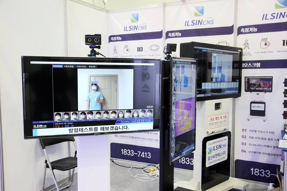 또 키오스크 형식 열화상카메라 등을 생산·판매하는 일신씨엔에스(ILSINCNS), 위생·덴탈마스크 제조·판매와 마스크제작장비를 제작하는 업체로 국내 마스크제작 장비 20여대를 운영해 생산하고, 마스크제작 장비는 규격품 및 커스마이징 제품도 취급하는 카운텍(COUNTEC), 공기·공간멸균기와 초음파 내장한 자동내시경 세척·소독기 및 소독제 등을 제조·판매·A/S까지 하는 휴온스메디케어(HUONS MEDISARE)도 전시회에 참여했다.