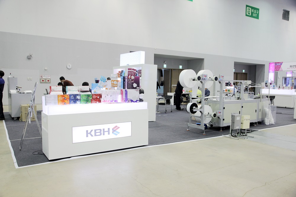 이번 K-방역 기자재 전시회 가장 큰 부스를 차지한 ㈜한국생활건강(KBH)은 두 종류의 마스크 제작장비(마스크 제작, 마스크 표면인쇄)를 가지고 전시회에 참여했다.