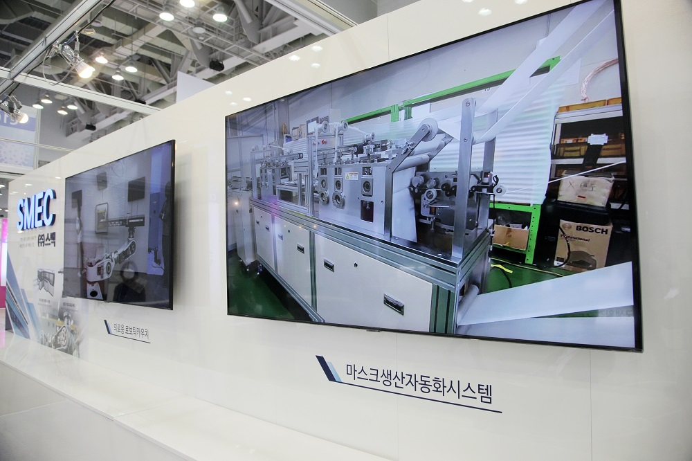 경상남도 김해시 주촌면에 소재하는 공작기계 제작업체인 ㈜스맥(SMEC)은 KF-94와 텐탈마스크를 제작하는 마스크제작 자동화 생산시스템 기기로 전시회에 참여했다.