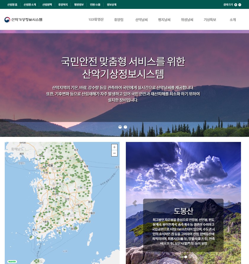 또한 최근 코로나19로 인해 실외활동이 증가하면서 산 나들이에 대한 관심이 높아지고 있다. 이에 따라, 산악지역에 대한 날씨 정보 수요도 증가하고 있으며, 그 필요성 또한 강조되고 있다.