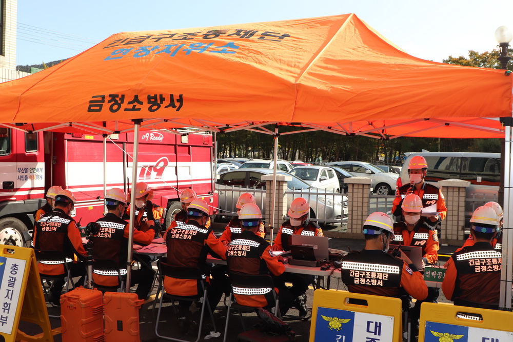 [부산=환경일보] 권영길 기자 = 부산시 금정소방서는 지난 10월30일 동절기를 맞아 대형 재난상황을 가정해 위기대응방법 숙달 및 통제단 요원의 대응능력 향상을 위한 불시 긴급구조통제단 훈련을 실시했다.