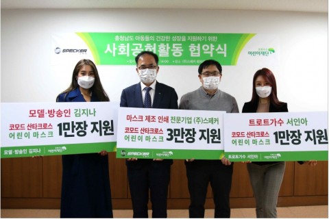 협약식에 참석한 설진영 스페커 대표이사는 “저소득 가정 등 사회 취약계층은 신종 코로나바이러스 감염증(코로나19)에 따른 경제 불황에 가장 타격을 입고 있음에도 불구하고, 생활필수품이 된 마스크를 구매하는 비용까지 추가 지출해야 하는 이중고를 겪는 현실이 매우 안타깝다”며 “더 많은 아이가 안전하고 건강하게 지금 어려운 시기를 잘 극복할 수 있도록 적극적으로 사회공헌 활동에 참여하겠다”고 말했다.