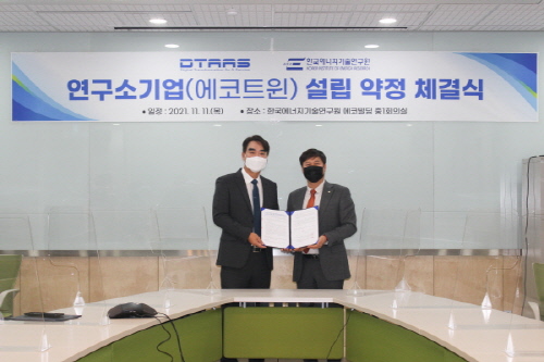 디지털 트윈(Digital Twin)과 디타스(대표 윤수근)와 한국에너지기술연구원(원장 김종남)이 지난 11일 약정을 체결하고 친환경 에너지 관리 분야 연구소기업 에코트윈을 공동 설립했다.