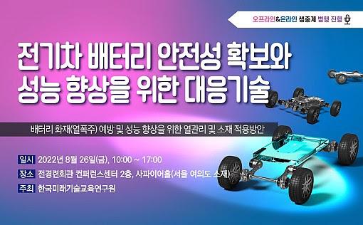 [환경일보] 최용구 기자 = 한국미래기술교육연구원(대표 박희정)은 오는 8월26일 서울 여의도 전경련회관 사파이어홀에서 전기차 배터리에 관한 세미나(온오프라인 병행)를 개최한다.