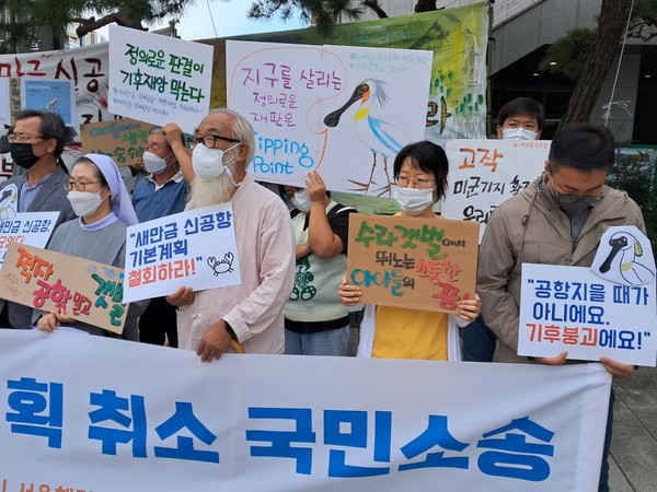 이날 새만금신공항백지화공동행동, 새만금신공항반대국민소송인단, 녹색법률센터 등은 집회를 열고 정부가 추진 중인 새만금신공항(새만금국제공항) 조성에 관한 기본계획의 취소를 촉구했다. 현장에는 종교인과 학생들의 모습도 보였다.