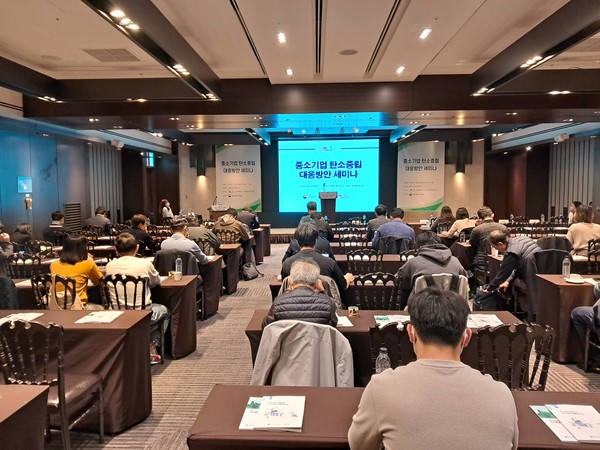 이날 세미나에는 기업체를 포함해 환경컨설팅과 금융 및 에너지 공공기관 관계자 등이 참여했다. 안태용 중소벤처기업부 국제협력과장은 “중소기업의 탄소중립 인식 제고를 위해 많은 노력을 하겠다”고 인사말했다.