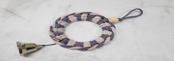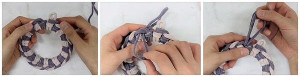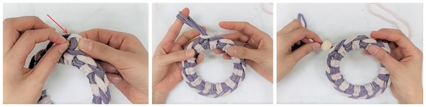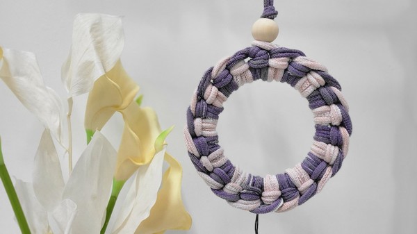 5. 보라색 링을 핑크색 링 안으로 넣은 뒤, 보라색 링을 당겨준다. 우드링으로 장식한다.