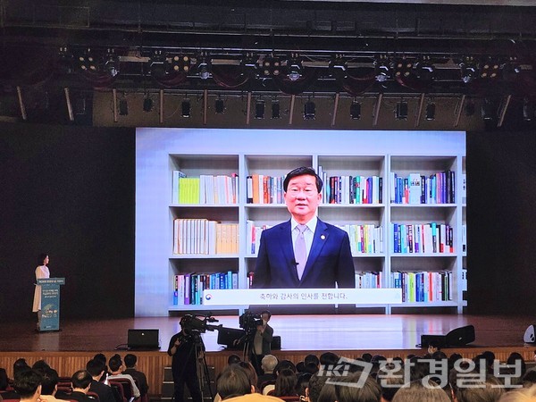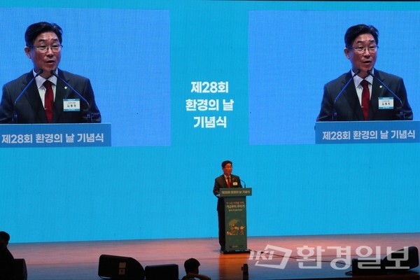 [고려대=환경일보] 박선영 기자 = 성북구 고려대 인촌기념관에서 5일 열린 제28회 환경의 날 기념식에서 전해철 국회 환경노동위원회 위원장은 영상 축사에서 “더 이상 미룰 수 없는 삶의 문제가 된 기후위기 극복은 우리의 최대 과제가 됐다”고 전제하고 “탄소중립 실천, 환경보전은 미래 세대의 생존권 보장을 위한 현 세대의 책임”이라고 강조했다.