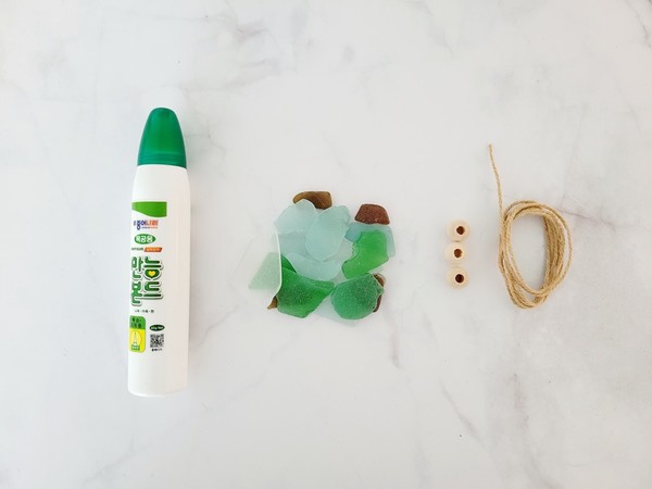 ▷준비물 : 바다유리, 목공풀 또는 글루건, 우드볼, 마끈