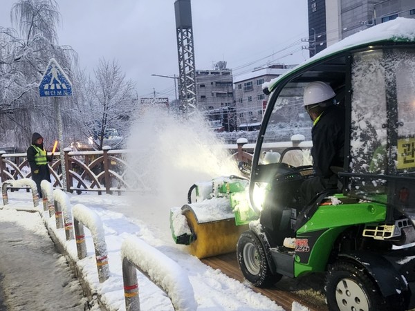 이외에도 구는 각 동 제설 현황에 따라 소형 제설 장비 4대를 파견하고, 올해 첫 도입한 보도용 소형 제설 장비 10대를 지원해 제설작업을 도울 계획이다.