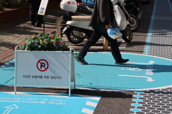 배려 페이빙은 충돌주의 구간, 안심 건널목 등 시각적 디자인을 보행로 바닥에 적용해 안전한 보행을 유도한다. 스카이블루 계열의 선명한 컬러는 보행자에게 안전 가이드를 제공하고, 운전자에게도 높은 시인성을 보장한다. 이는 2022년 공공디자인 실험에서 그 효과가 검증돼 이번 사업에 확대 적용됐다.