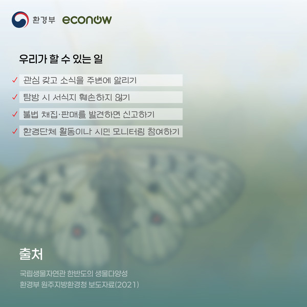 기후에너지환경부와 에코나우는 생물자원 보전 인식제고를 위한 홍보를 실시함으로써 ‘생물다양성 및 생물자원 보전’에 대한 대국민 인지도를 향상시키고 정책 추진의 효율성을 위해 ‘생물다양성 녹색기자단’을 운영하고 있다. 고등학생 및 대학생을 대상으로 선발된 ‘생물다양성 녹색기자단’이 직접 기사를 작성해 매월 선정된 기사를 게재한다. <편집자 주>
