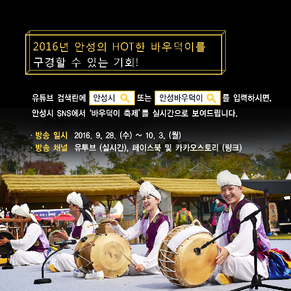 | '2016안성맞춤남사당바우덕이축제” ‘유튜브’(Youtube) 실시간 공개 |